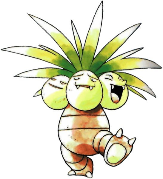 *_Descrição_: O exeggutor veio originalmente dos trópicos. Suas cabeças ficam cada vez maiores com exposiçāo à forte luz do sol. Diz-se que quando as cabeças caem, elas se agrupam no chão para formar um Exeggcute. Seus gritos são muito barulhentos.*