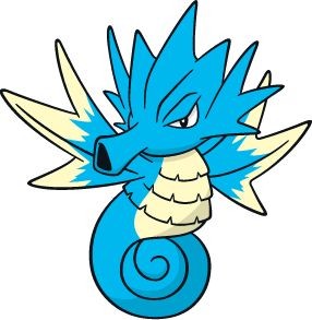 *_Descrição_: Seadra é um pokémon cavalo marinho com pele azul claro com uma barriga amarelada junto da ponta de suas nadadeira e tendo um corpo mais espinhoso que sua pré evolução. Esse Pokémon pode parecer mediano, mais cuidado com seus Atks a distância,pq suas habilidades de Atk a distância podem ser equivalentes a tiros de pistolas.*