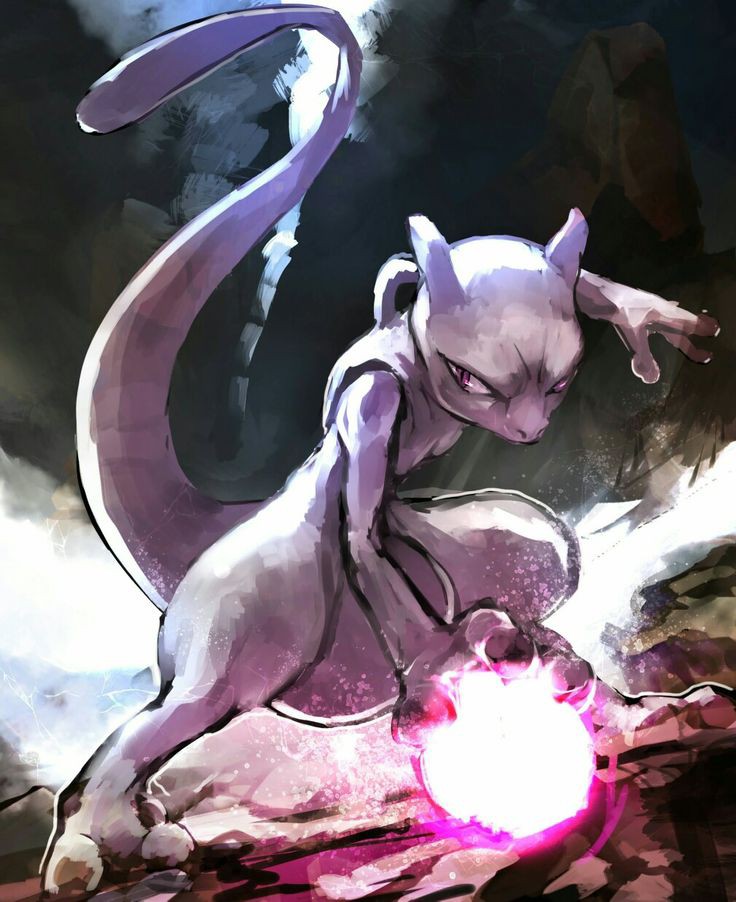 *_Descrição_: Mewtwo é um Pokémon do tipo Psíquico, reconhecido por sua aparência imponente e aura enigmática. Criado artificialmente através da engenharia genética a partir do DNA de Mew, Mewtwo é uma criatura de poder extraordinário e inteligência superior. Seu corpo é esguio e musculoso, com uma pele de tom cinza claro, que destaca seus músculos definidos.*