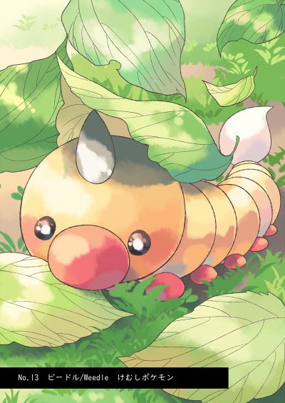*Weedle tem um sentido extremamente agudo de cheiro. Ele é capaz de distinguir os seus tipos favoritos de folhas daqueles que não gosta apenas por cheirar com a sua grande tromba vermelha (nariz).*